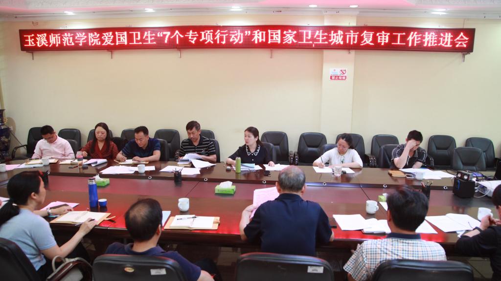 4月27日下午,学校召开爱国卫生“7个专项行动”和国家卫生城市复审工作推进会,办公室、宣传部、学生处、保卫处、工会、溪达公司及后勤服务中心等主要负责人,各二级学院党委书记参加会议,会议由杨光副校长主持。