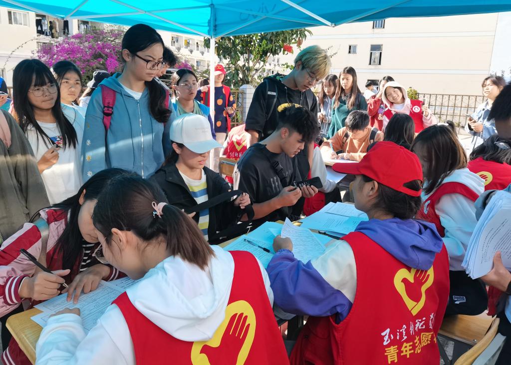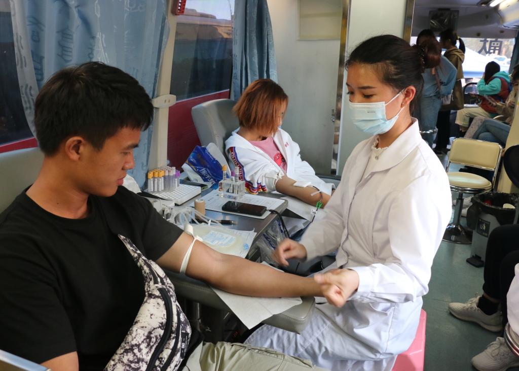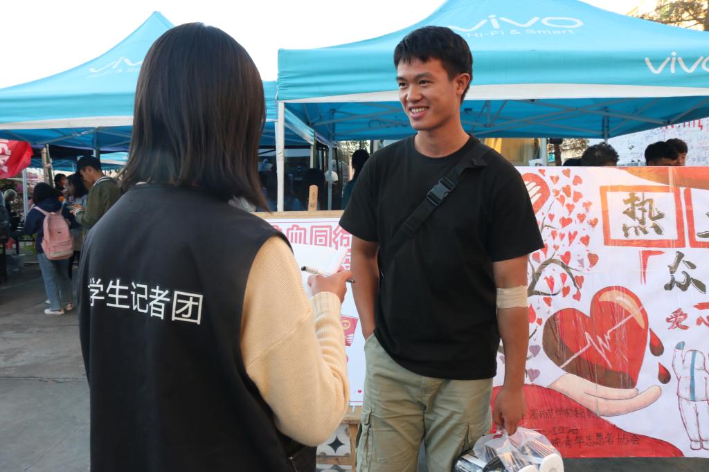 “同学,时间已经到了,明天再来吧。”“拜托啦,我已经排了很久的队了!”这样的对话不是出现在商场促销活动场合,而是出现在玉溪师范学院品味苑门口的采血现场。从11月23日开始至26号结束,由玉溪师范学院与玉溪市中心血站联合主办,以“热血同行 同心抗疫”为主题,为期4天的无偿献血活动在玉溪师范学院品味苑门口有条不紊地展开。师生积极踊跃参加献血的画面,成了入冬以来校园最美的景致。怀着对献血者、医务工作者、学生志愿者由衷的敬意,玉师大学生记者团学生记者做了现场采访。