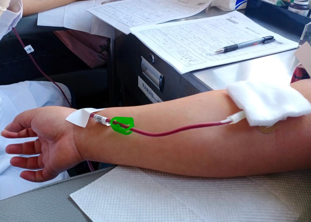 “献血在救死扶伤的同时,也是仁心义举的表现。献血可促进人体新陈代谢,是利人利己的好事。此外,血站会对每袋血液进行严格检验,献血者在献血后可以知道自己的检验结果,所以献一次血也就等于做了次小小的健康体检。” 采血点现场的医护人员告诉学生记者。