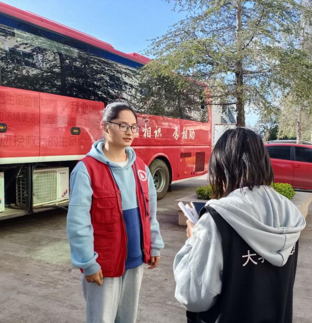 来自教师教育学院学前教育专业的学生志愿者王雪丽在接受大学生学生记者采访时说:“因为热爱志愿者这份工作所以就毅然决然的来当志愿者。献血可以帮助到更多需要帮助的人,因为稀有血型还是蛮缺的,所以献血可以及时供给,受疫情影响,现在需要血的人较以前可能更多,所以我觉得献血是件非常有意义的事儿。”