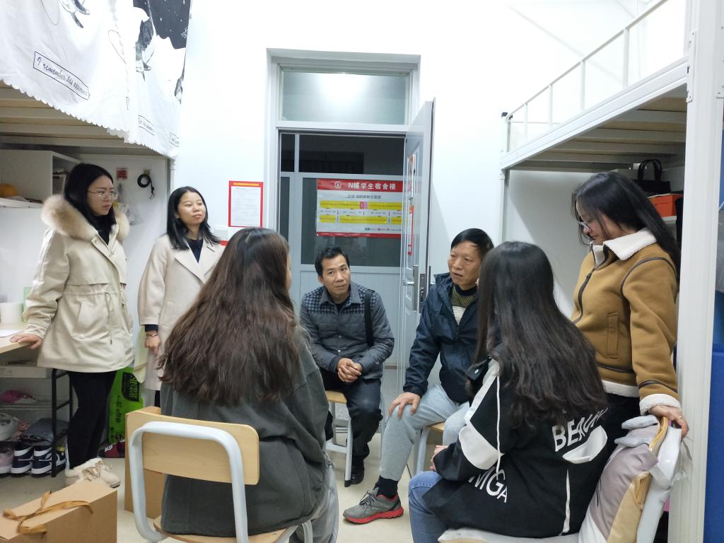 2020年12月8日晚,校党委书记张学武到学生宿舍N幢看望来自盐津县的杨艳和砚山县的金寒琦两名家庭困难学生,把党的关怀和学校的温暖送进学生心中。马克思主义学院相关领导、教师参加上述活动。