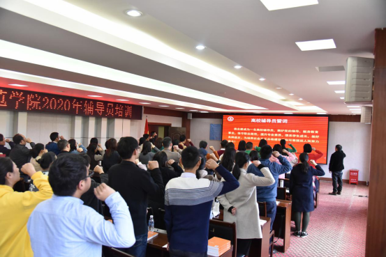 随后,由学生处处长张春霞领誓,带领全体参会人员举行了庄严、神圣的辅导员宣誓仪式。
