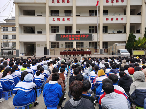 龙坝镇初级中学李永德校长用3个词表达了激动的心情:“感谢”、“感动”、“行动”,并对学生们做了鞭策。大乜多驻村第一书记沐士光介绍了玉溪师范学院教育扶贫、基础设施扶贫、产业扶贫等定点扶贫项目情况,并强调百年大计教育为本,同时对学生和老师寄予了殷切希望。龙坝镇周源镇长表达了对玉溪师范学院的感谢,同时感谢社会各界人士对龙坝教育事业的帮助和支持,在各界爱心人士和党委政府的关心和帮助下,龙坝教育事业将有一个光辉的前景。