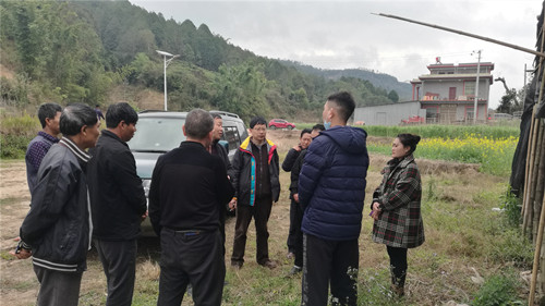 在大乜多村委会,驻村工作队长沐士光向章新副校长一行汇报大乜多村脱贫攻坚工作和学校帮扶情况,详细介绍了大乜多村“巩固提升茶产业,发展壮大晚熟芒果,培育姬松茸种植、瑶鸡养殖、药材种植和加工业等”村级产业发展规划。