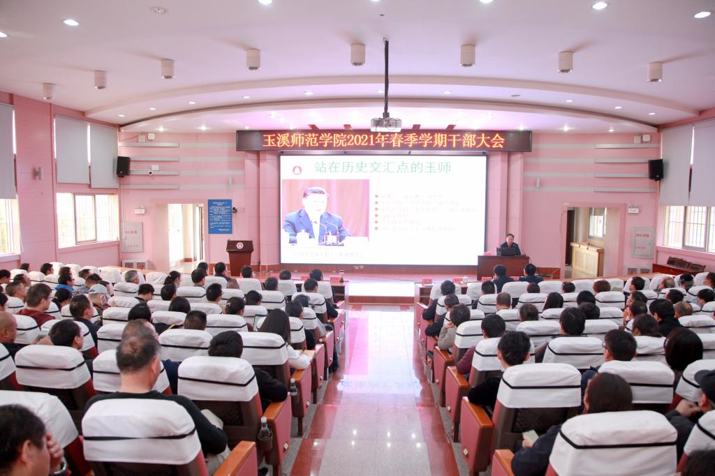 3月5日,玉溪师范学院在科学讲堂召开2021年春季学期干部大会,总结工作成效、分析形势任务、查找差距和不足,谋划未来发展,安排部署2021年重点工作。校党委书记张学武主持会议,校党委副书记、校长马力作工作报告。校党委委员,中层干部(含非领导职务)参加会议。