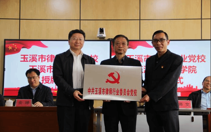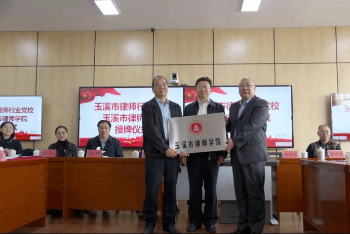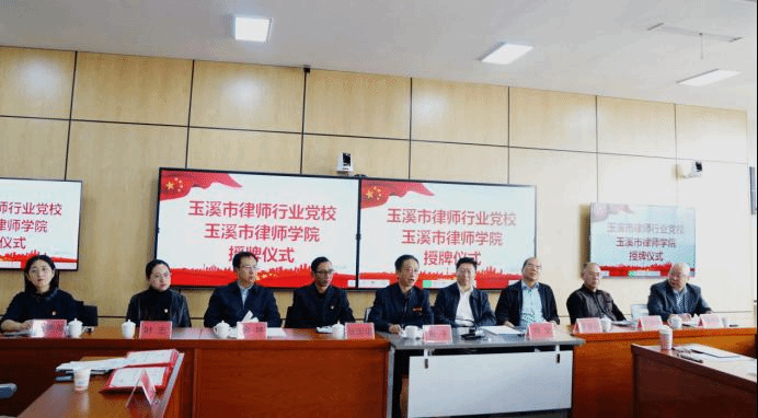 2021年3月9日上午,玉溪市律师行业党校、市律师学院授牌仪式在玉溪师范学院法学院隆重举行。玉溪师范学院党委副书记葛平,玉溪市司法局党委书记、局长师文,法学院党委书记张国珺、院长罗家云、党委副书记叶宏、副院长朱艳英,市司法局党委委员、副局长余坤,市律师行业党委书记夏黎明,市律师协会会长李世敏出席会议。