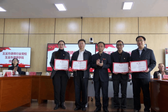 玉溪师范学院党委副书记葛平为市律师行业党校授牌,并为党校校长、副校长颁发聘书。