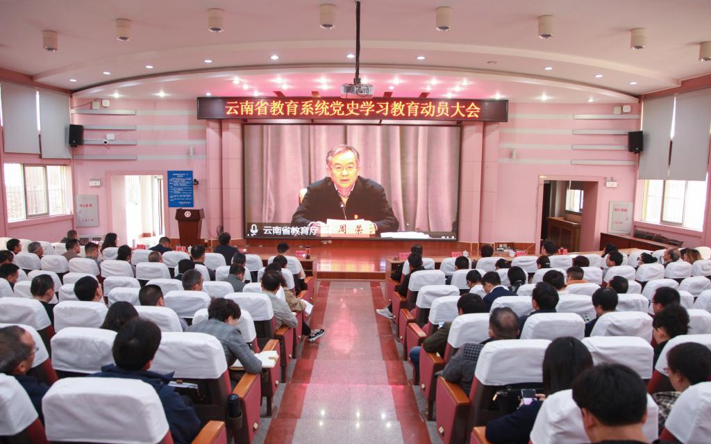 3月12日,全省教育系统党史学习教育动员大会在昆明召开。省委教育工委书记、省教育厅党组书记、厅长周荣出席会议并作动员讲话。他强调,全省教育系统要深入学习贯彻习近平总书记在党史学习教育动员大会上的重要讲话精神,学习贯彻省委和教育部党史学习教育动员大会精神,切实把思想和行动统一到习近平总书记重要讲话精神上来,按照中央和省委、教育部的部署要求,学史明理、学史增信、学史崇德、学史力行,学党史、悟思想、办实事、开新局,以崇高的政治觉悟、昂扬的精神状态、务实的工作作风,高标准高质量开展好党史学习教育,以优异成绩迎接建党一百周年。