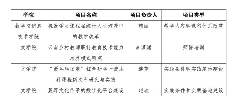 2021年3月4日,教育部下发《教育部高等教育司关于公布2020年第一批产学合作协同育人项目立项名单的通知》(教高司函〔2021〕3号),公布了2020年第一批产学合作协同育人项目立项名单,我校4个项目获批立项,其中教学内容和课程体系改革类项目1项、师资培训类项目1项、实践条件和实践基地建设类项目2项。