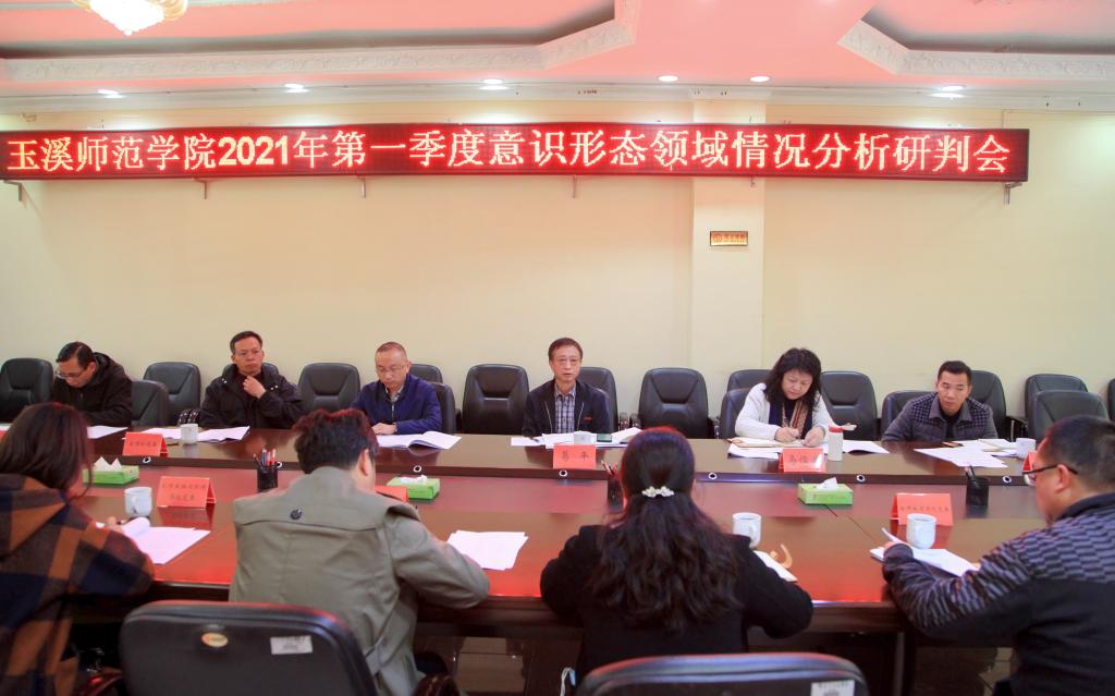 3月23日,玉溪师范学院在一办一楼会议室召开2021年第一季度意识形态领域情况分析研判会,校党委副书记葛平,校党委委员、宣传部部长、新闻中心主任马恒奕出席会议,各二级党委书记,宣传部(新闻中心)相关人员参加会议。会议由马恒奕主持。