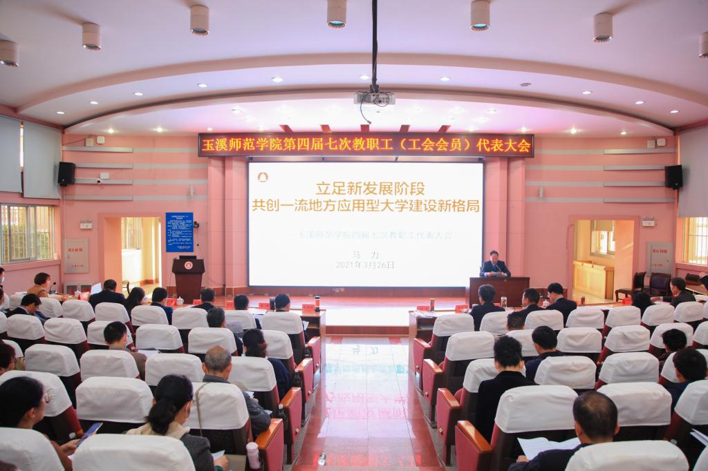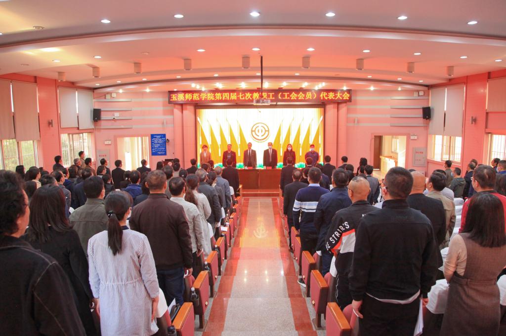 2021年3月26日,玉溪师范学院第四届七次教职工(工会会员)代表大会在科学讲堂召开。学校领导、各部门、学院教职工正式代表、列席代表总计170余人参加了会议,会议在庄严的国歌声中开幕。