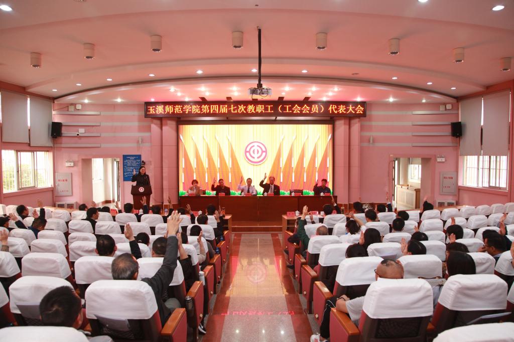 随后,正式代表在科学讲堂举手表决通过了《学校行政工作报告》《学校2020年财务收支决算和2021年财务收支预算报告》《玉溪师范学院奖励性绩效工资分配方案》《工会工作报告》。