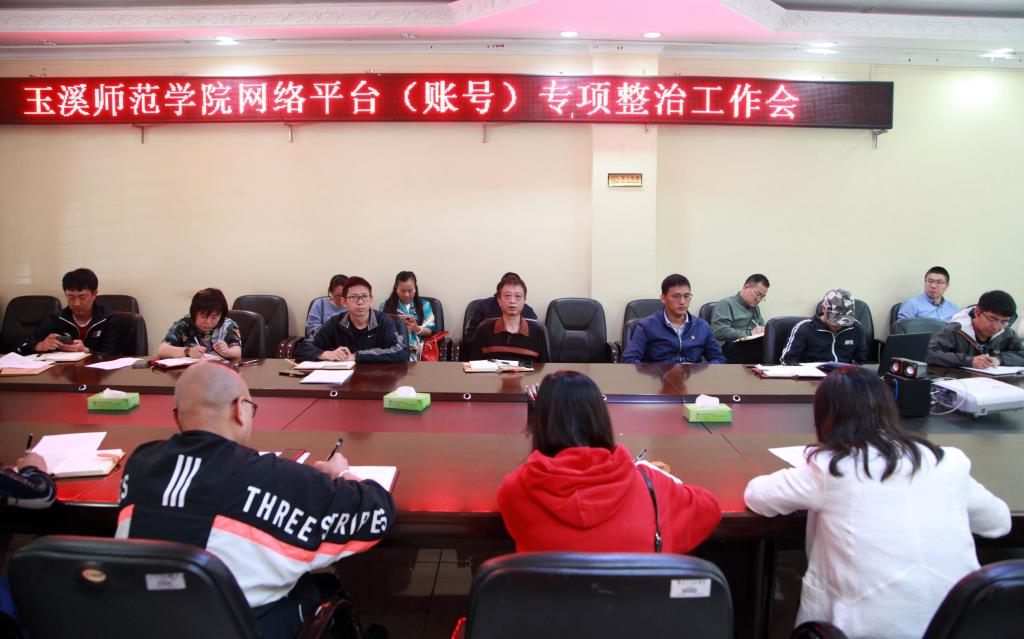 为扎实推动巡视整改任务全面落实,强化学校网络平台(账号)管理,维护学校网络意识形态安全。4月20日上午,玉溪师范学院在一办一楼会议室召开网络平台(账号)专项整治工作会。校党委副书记葛平出席会议,各学院、部门信息管理员,党委宣传部、学校网信办相关人员参加会议。