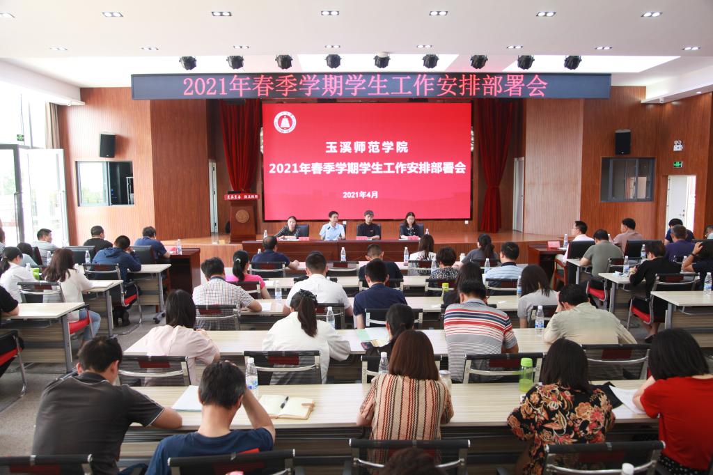 为落实云南省高校专职辅导员队伍建设专项整改有关要求,推动学生工作队伍建设,4月28日下午,玉溪师范学院在大学生活动中心学生会堂召开玉溪师范学院学生工作安排部署会。校党委副书记葛平、马文龙,副校长杨光,各学院党委书记、党委副书记,组织部、人事处、学生处主要负责人及相关人员,各学院专(兼)职辅导员参加会议。校党委副书记葛平主持会议。