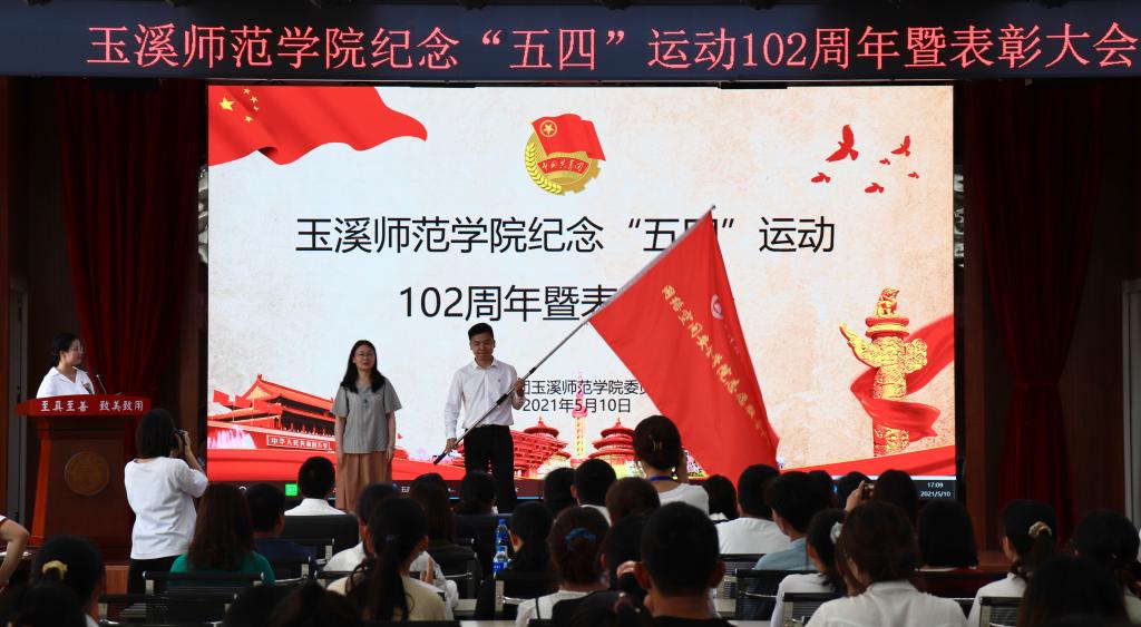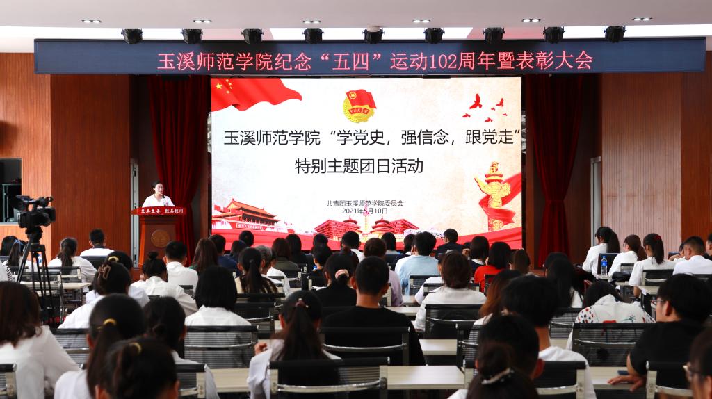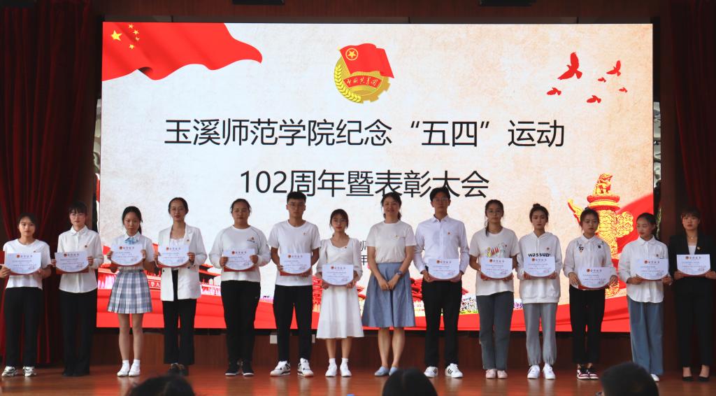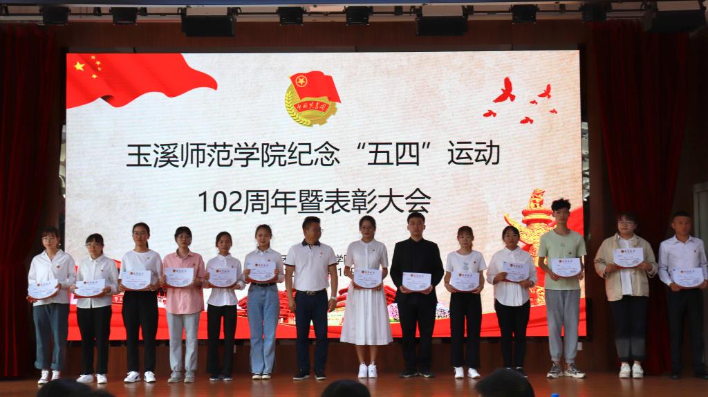 为弘扬“五四”精神,激励玉师学子争做新时代新青年,学校于5月10日在大学生活动中心学生会堂举行纪念“五四”运动102周年暨表彰大会。学校党委委员、副校长杨光,学生处处长张春霞,校团委书记罗辉,宣传部副部长戴志,学生处、校团委相关负责人及各学院团委书记和优秀学生代表参加会议。