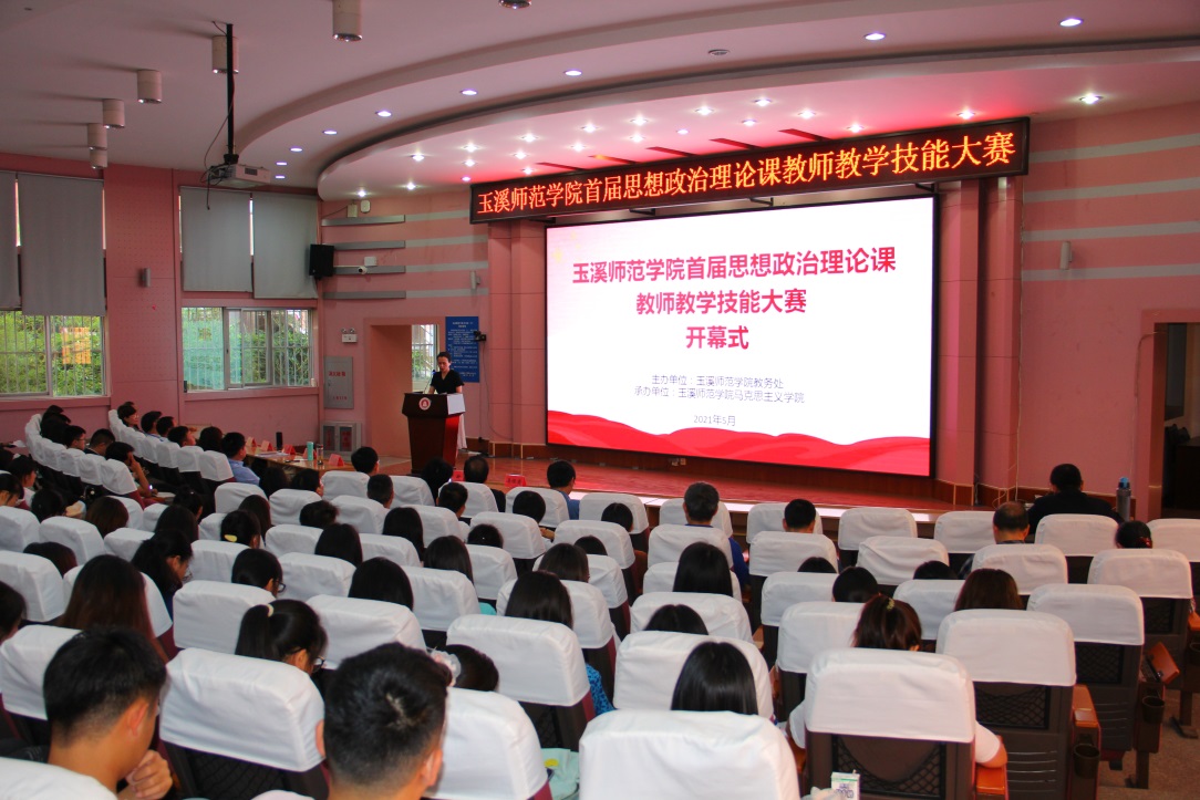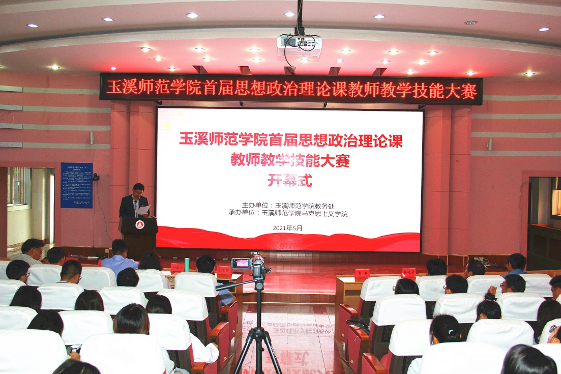 为贯彻落实习近平总书记在学校思想政治理论课教师座谈会上的重要讲话精神,切实提高思想政治理论课课堂教学质量和教师教学水平。2021年5月9日,玉溪师范学院首届思想政治理论课教师教学技能大赛在科学讲堂拉开序幕。