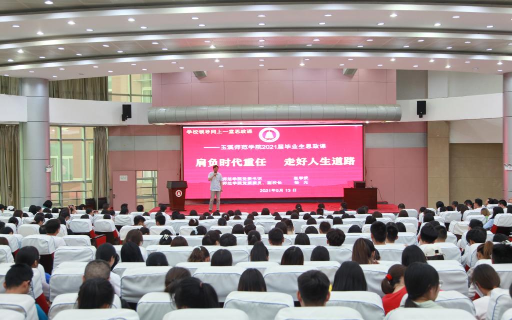 5月13日,学校2021年春季学期首堂毕业生思政大课暨就业形势报告会在图书馆多元学术报告开讲,校党委书记张学武,党委委员、副校长杨光共同为2021届毕业生讲授思政课。2021届毕业生代表,各学院党委副书记、专职辅导员,学生处全体人员500余人聆听了思政课。两位校领导以《肩负时代重任 走好人生道路》为题,从“生逢盛世 任重道远”“时代担当 困难多多”“坚定自信 实现抱负”三个维度展开授课。
