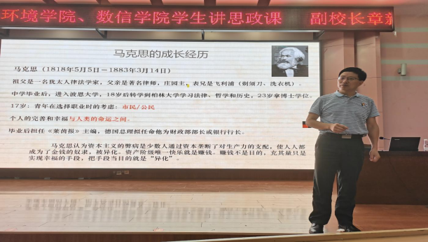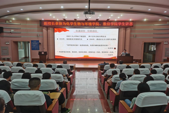 为贯彻落实习近平总书记关于高校思想政治教育工作和青年工作的重要讲话精神,教育引导广大师生坚定理想信念,厚植爱国主义情怀,增强民族自豪感和自信心。5月24日19:00,校党委委员、副校长章新在科学讲堂为化学生物与环境学院和数学与信息技术学院2021届毕业生讲授思政课。