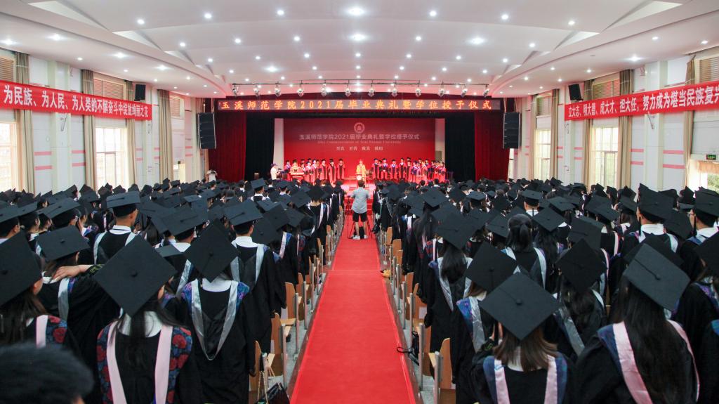 6月1日上午10点,在庄严而热烈的气氛中,玉溪师范学院2021届毕业生毕业典礼暨学位授予仪式在师生共唱校歌《毕业歌》中落下帷幕。