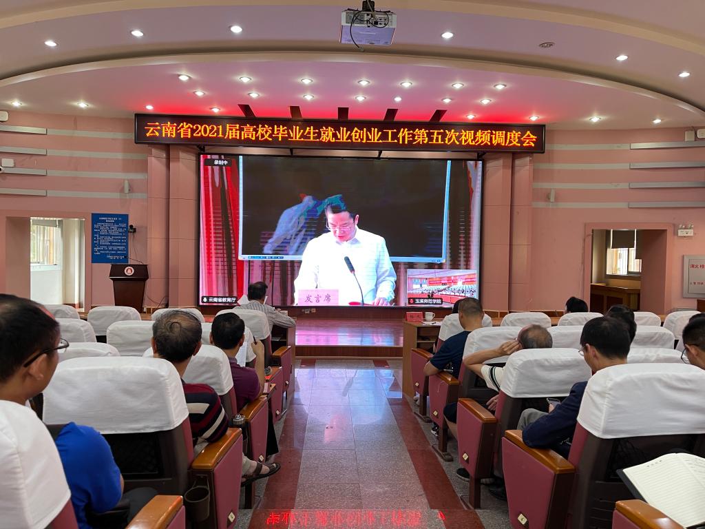 5月28日上午,省委教育工委、省教育厅召开云南省2021届高校毕业生就业创业工作第五次视频调度会。我校在科学讲堂设立分会场,校长马力、副校长杨光出席会议,学生处、教务处、保卫处等部门负责人,二级学院书记、院长,负责就业工作的人员及辅导员(班主任)参加会议。