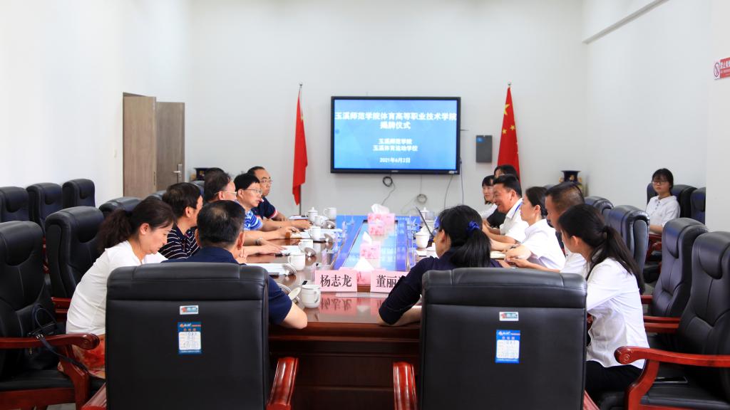 6月2日,玉溪师范学院体育高等职业学院在玉溪体育运动学校揭牌。玉溪师范学院党委副书记、校长马力,党委委员、副校长章新,体育学院院长聂锐新、党委书记杨志龙、副书记董丽波,办公室、教务处、学生处主要负责人;玉溪体育运动学校党委书记杨红,党委副书记、校长柏家渭,副校长张开兰、何斌,相关处室负责人参加。玉溪师范学院党委委员、副校长章新主持揭牌仪式。