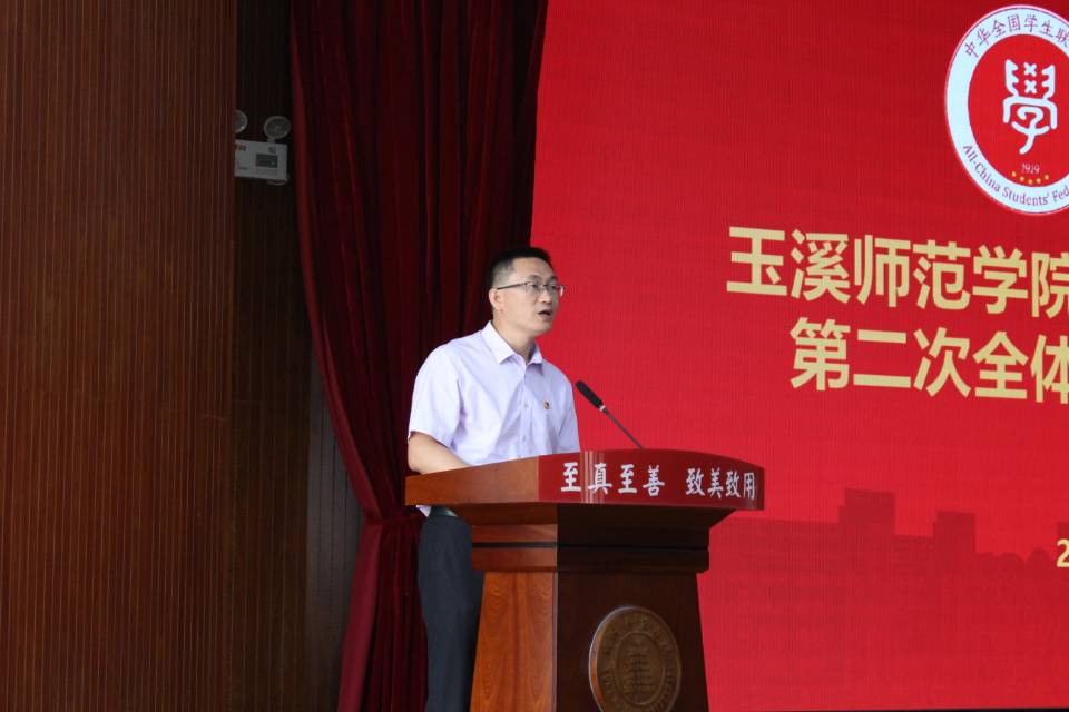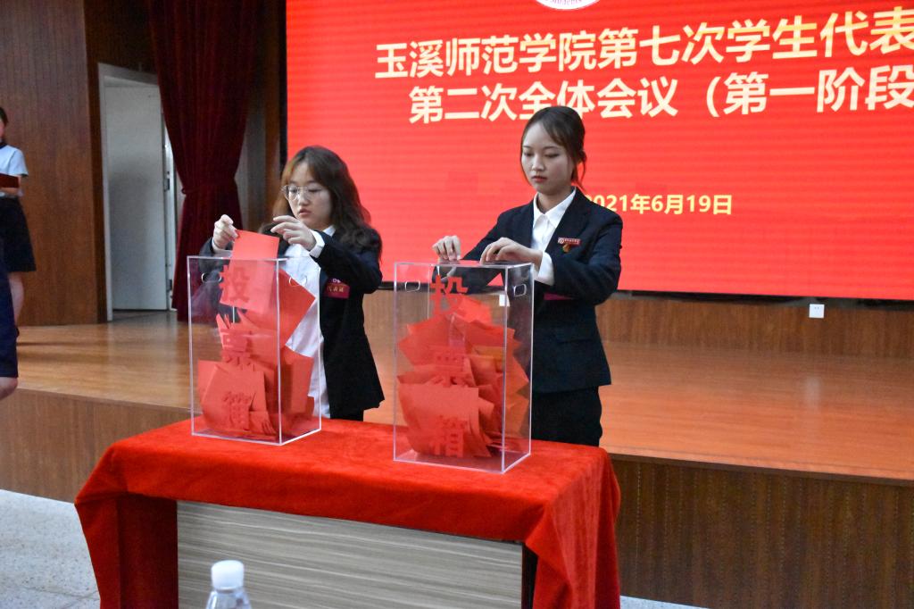 根据《中华全国学生联合会章程》、《学联学生会组织改革方案》、《高校学生代表大会工作规则》要求,经报云南省学生联合会及学校党委同意,玉溪师范学院第七次学生代表大会于2021年6月19日在大学生活动中心学生会堂召开。学校党委副书记葛平、校团委书记罗辉、玉溪农业职业技术学院团委书记马娅、我校团委专职团干、各二级学院团委书记以及各学院推荐产生的134名代表出席了大会。