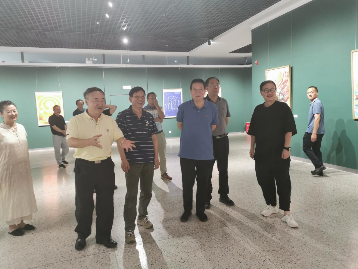 云南艺术学院陈劲松副校长、中央美术学院博士生导师肖勇教授参观二楼艺术作品