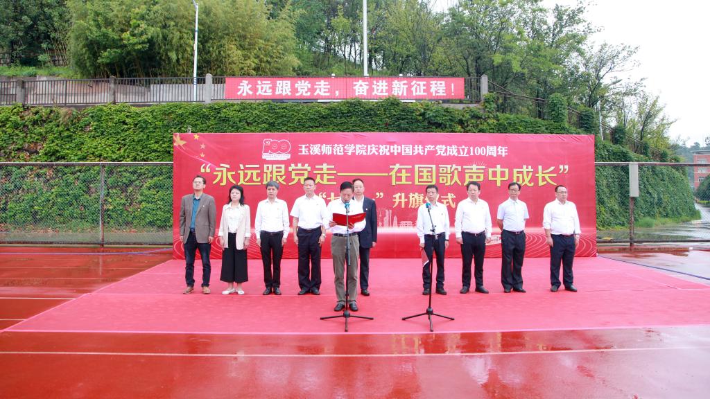 7月1日上午7:00,玉溪师范学院庆祝中国共产党成立100 周年“永远跟党走——在国歌声中成长” “七·一”主题升旗仪式在足球场举行。校党委书记张学武,校党委副书记、校长马力,党委委员、保留副厅级待遇的校领导,全校教职工,2020 级、2019 级、2018 级全体在校学生参加仪式。