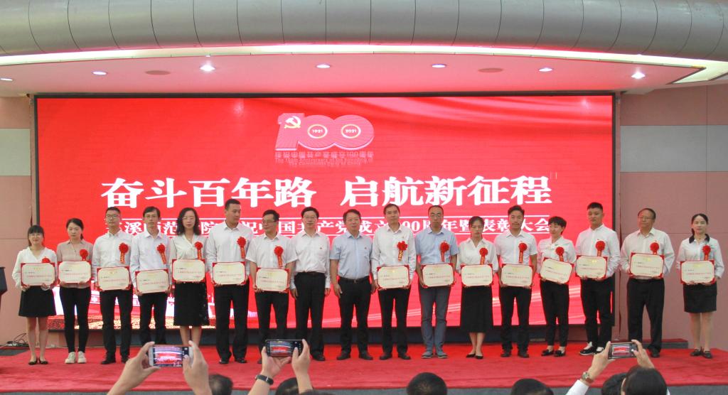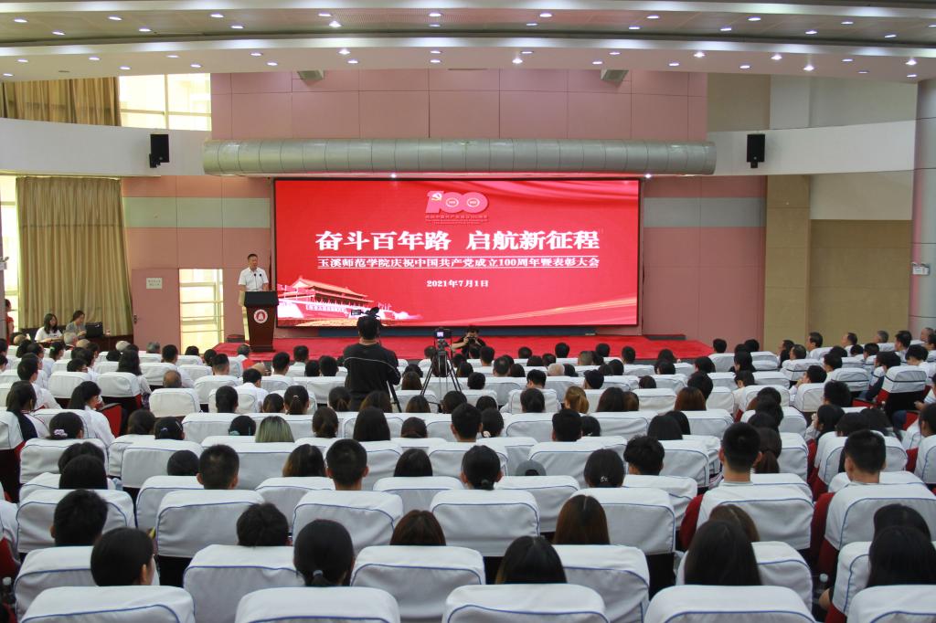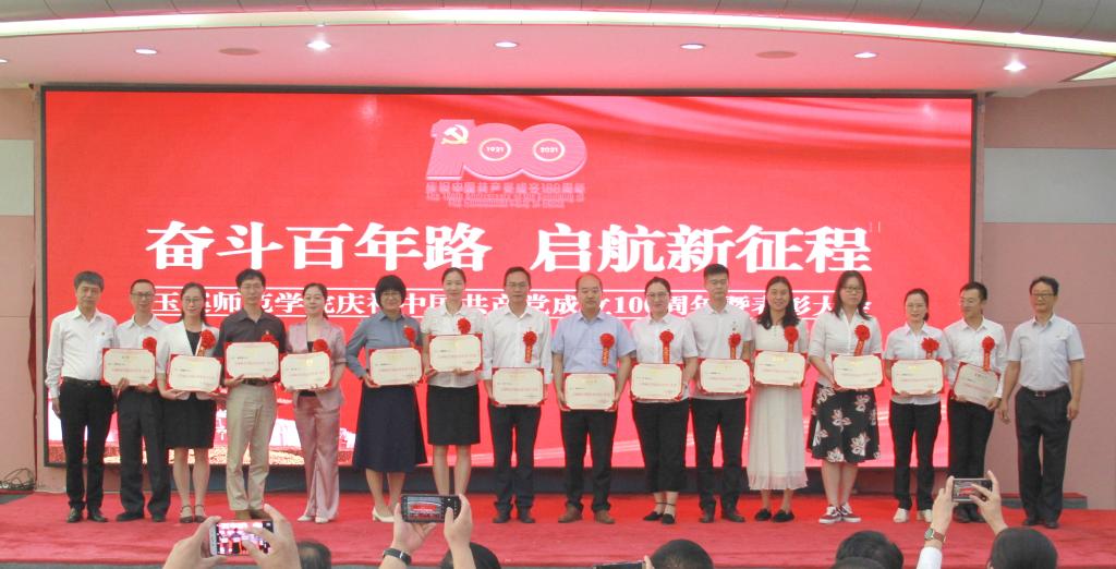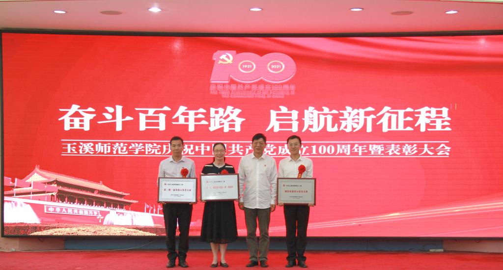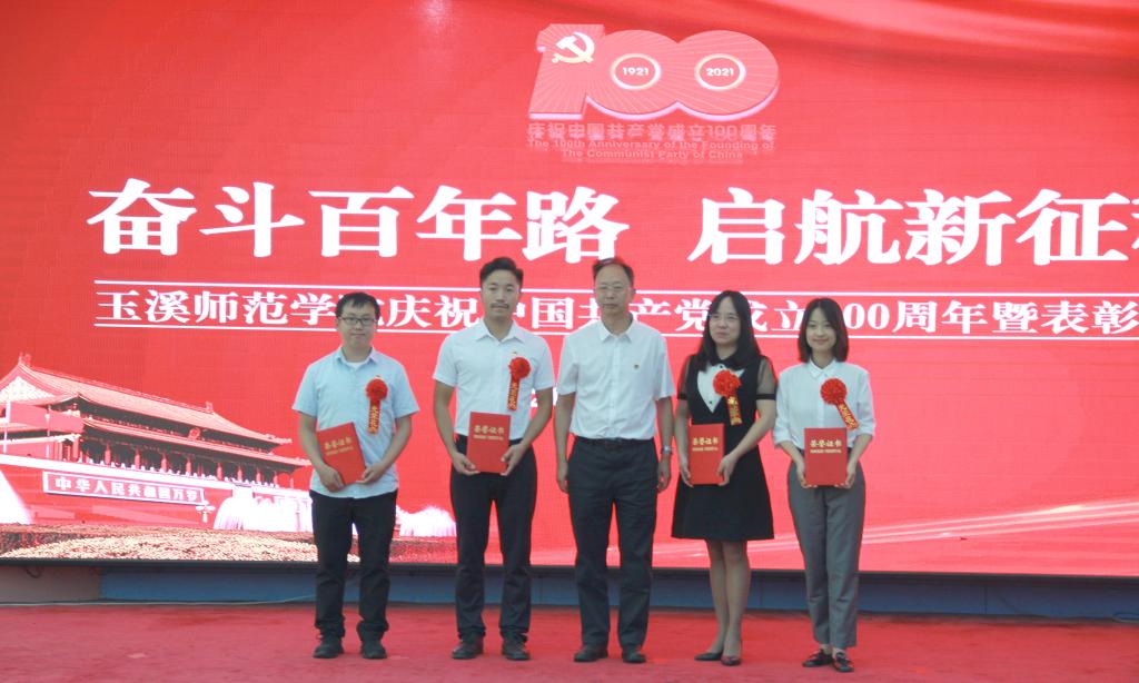 在庆祝中国共产党成立100周年之际,为表彰先进、弘扬正气,激励广大党员和各级党组织不忘初心、牢记使命,奋勇争先、建功立业,7月1日下午15:00,玉溪师范学院在图书馆多元学术报告厅隆重举行庆祝中国共产党成立100周年暨“七.一”表彰大会,颁发“光荣在党50年”纪念章,表彰学校涌现出的先进基层党组织、优秀共产党员和优秀党务工作者,教育引导全校各级党组织和广大党员在回顾党史中牢记责任,在展望未来中激发动力,推动学校各项事业在新时代新征程中不断迈上新台阶。