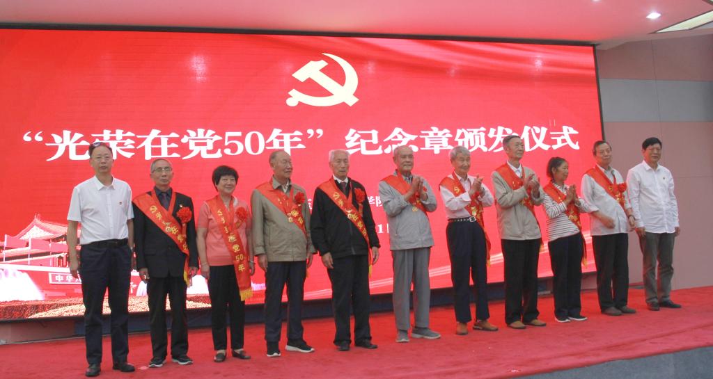 校党委书记张学武,校党委副书记、校长马力为11名老党员颁发“光荣在党50年”纪念章