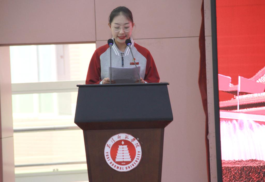 期间,受省委教育工委表彰的“优秀共产党员”商学院秦杉老师和预备党员代表文学院2018级学生张雪上台发言,新老党员代表均表示,在这激动人心的日子里,向伟大的中国共产党致以最崇高的敬意和最真诚地祝福。作为一名共产党员,一定牢记全心全意为人民服务的宗旨,发扬党的优良传统和作风,认真学习,努力工作,不辜负党和人民的殷切期望。