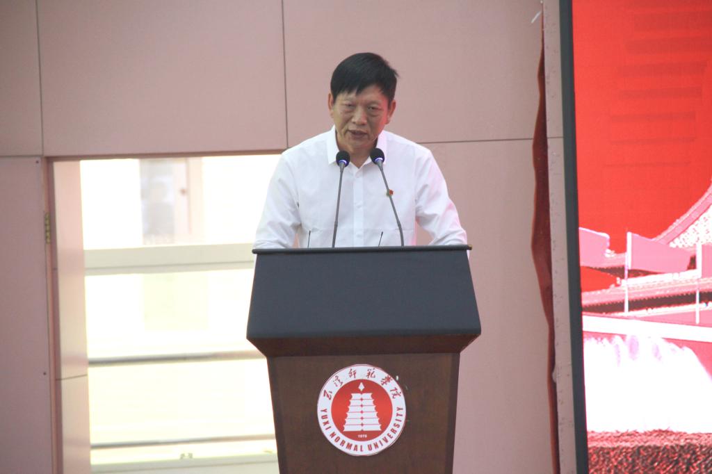 校党委书记张学武发表讲话并指出,表彰目的在于树立典型,树立榜样,见贤思齐,形成统一向上的力量,进一步的加快转型发展,加速学校的内涵提升。全校共产党员要以先进典型为榜样,弘扬先进、崇尚先进、学习先进,要以获得“七一勋章”、“光荣在党50年”纪念章的优秀共产党员和中央、省委、省委教育工委、学校党委表彰的“两优一先”先进集体和先进个人为榜样,继承和发扬党的优良传统,坚定理想信念,坚守初心,践行入党誓言,以更加饱满的精神状态、更加务实的工作作风,为全面推进学校建成一流地方应用型大学做出新的、更大的贡献!