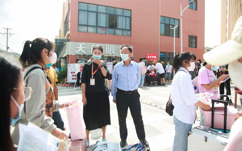新生报到当天,校党委书记张学武、校长马力等校领导多次到迎新现场看望慰问一线工作人员,检查、指导新生报到工作,并和新生及家长们亲切交流,了解学生情况,向学生家长介绍学校疫情防控有关措施及学生在校期间学习、生活等方面情况。希望家长放心、安心,希望学生尽快融入玉师,尽快找到方向和定位,过充实且有意义的大学生活。