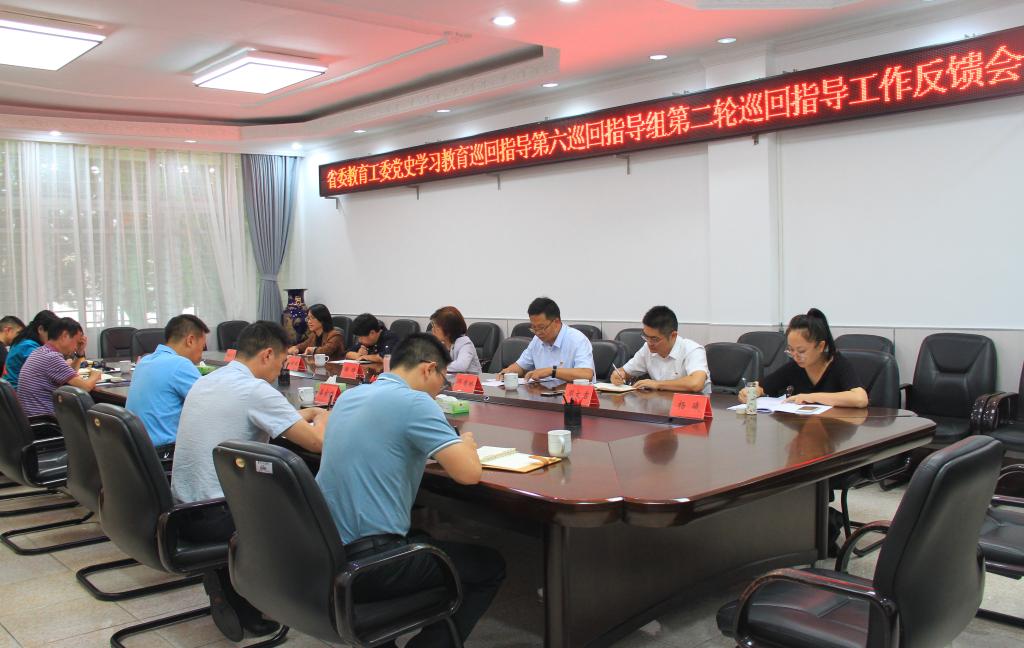 下午三点,省委教育工委、省教育厅党史学习教育第六巡回指导组第二轮巡回指导反馈会在一办一楼会议室召开,学校党史学习教育领导小组及成员单位主要负责人,商学院、数学与信息技术学院党委书记参加了会议。
