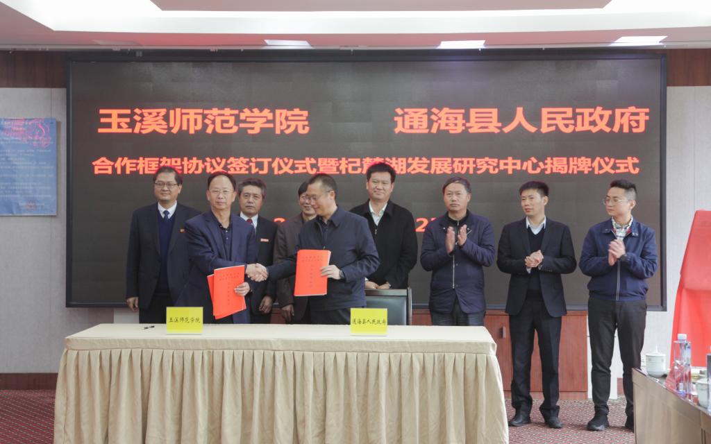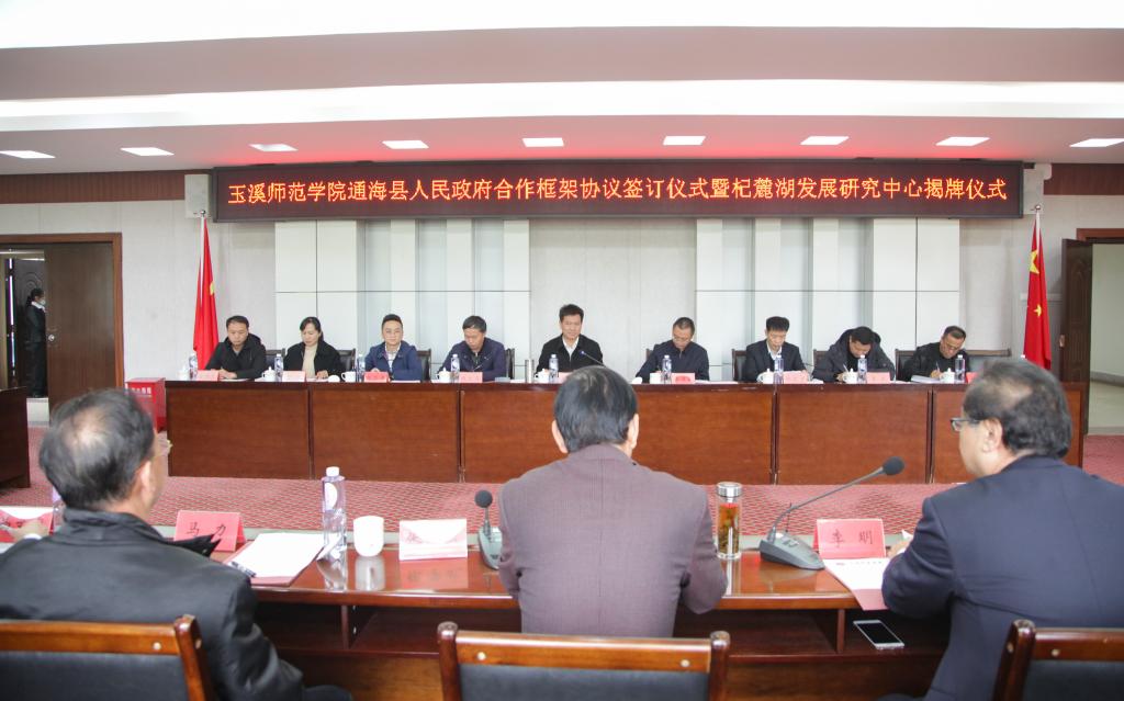 10月22日,玉溪师范学院与通海县人民政府合作框架协议签订暨“杞麓湖发展研究中心”揭牌仪式在玉溪师范学院举行。