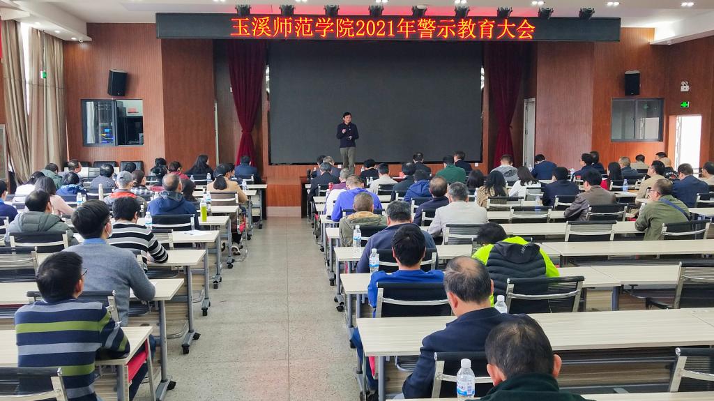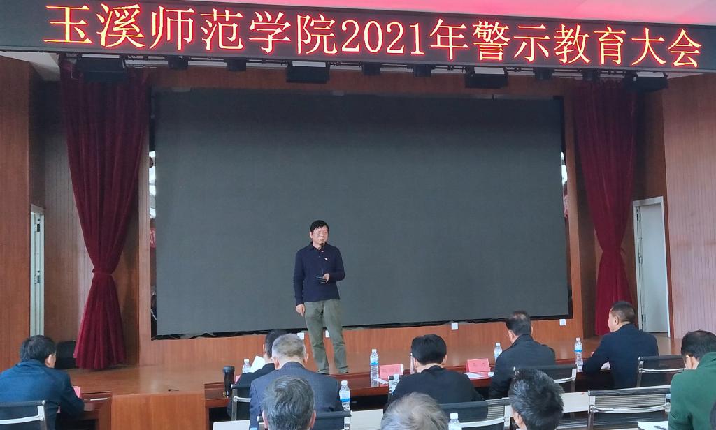 为加大以案明纪说法力度,2021年10月29日下午,玉溪师范学院在大学生活动中心学生会堂召开2021年警示教育大会,学校领导班子成员、中层领导干部共同观看警示教育片《师之堕》,教育引导广大党员干部、教职员工以案为鉴,以案促廉。会议由学校纪委书记李长虹主持。