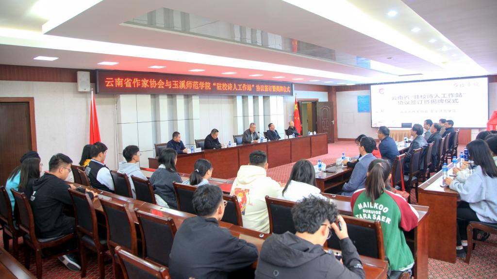 为推动诗歌创作繁荣,培育诗歌创作新人,丰富校园文化生活,提高人才培养质量,助推学校内涵式高质量发展,11月8日下午,云南省作家协会与玉溪师范学院签订“驻校诗人工作站”合作协议,云南首家“驻校诗人工作站”揭牌成立。
