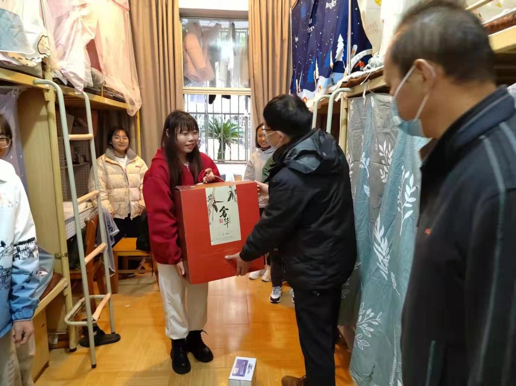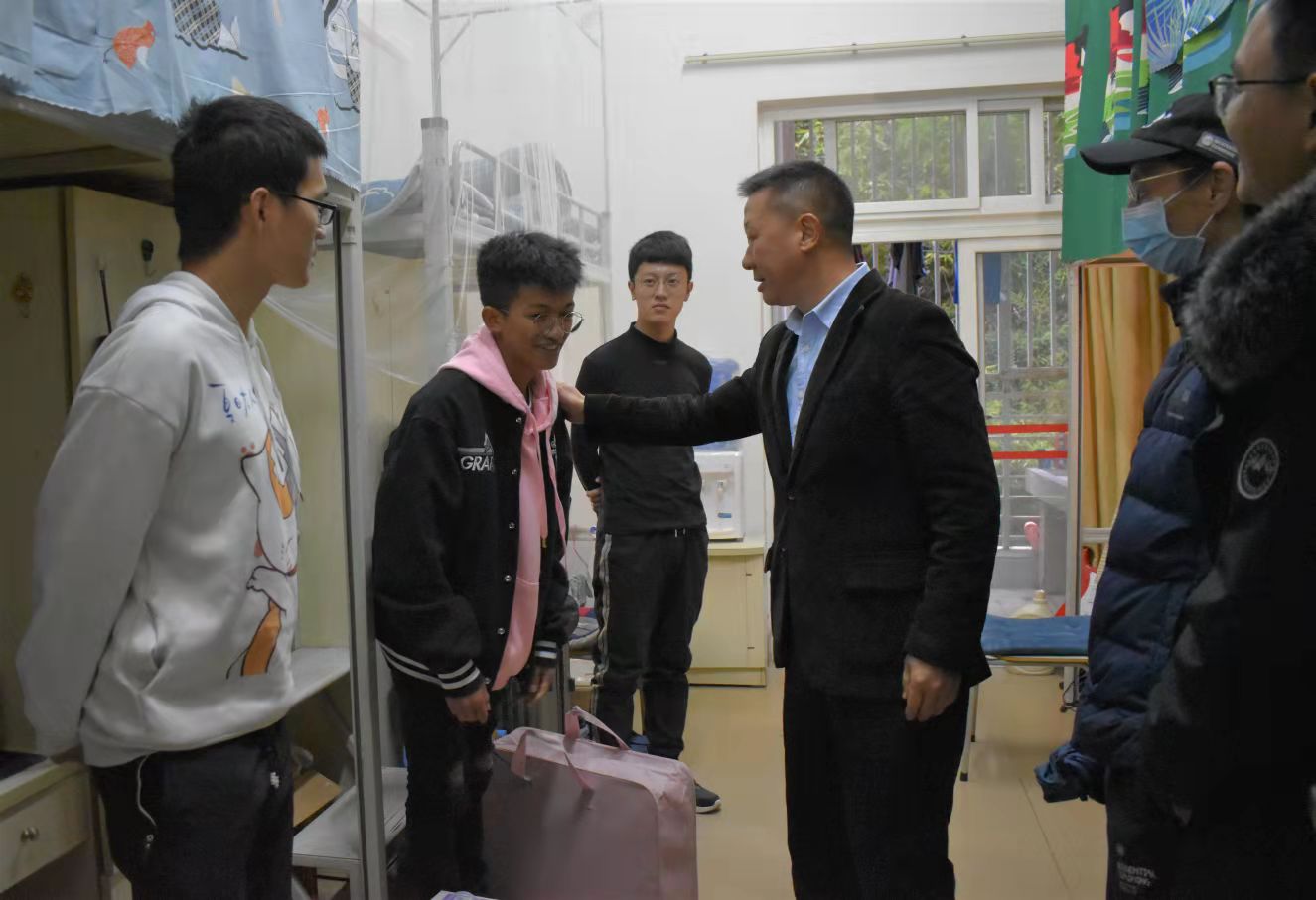 校领导们深入学生社区,与学生促膝谈心,耐心细致地和同学们进行交流,关切地询问了同学们的学习、生活及家庭情况,嘱咐同学们要积极融入大学生活、做好学业规划。勉励同学们要克服困难、自强不息、努力学习,积极参加校园活动,全面提高自身综合素质,珍惜党和国家对大学生的资助和关怀,努力成为理想远大、具有社会责任感的优秀人才。随后,校领导们为同学们送上了学校购置寒被和慰问品,希望在寒冷的冬季,能给同学们送上学校的温暖。同学们深深感受到学校和领导的关心,表示一定会好好学习,不辜负学校的期望,将以优异成绩回报学校。