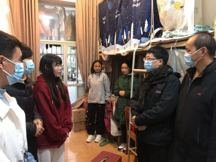 副校长章新一行依次走访两位同学所在宿舍,询问同学们的学习生活情况。章新表示,困难只是暂时的,大学是梦想开花的地方,只要付出努力必定能收获硕果累累,要坚信自己一定能通过知识改变自己和家庭的命运。章副校长还鼓励她们珍惜大学时光,充分利用学习资源提升自我,为未来做好知识储备。