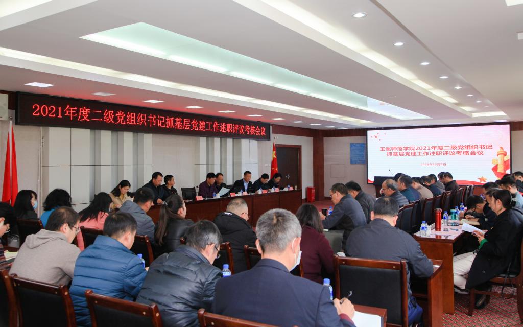 为深入学习贯彻习近平新时代中国特色社会主义思想,落实中央、省委关于基层党建工作决策部署和党组织书记抓基层党建工作要求,抓实基层党建,12月2日下午,玉溪师范学院在图书馆3003会议室召开2021年度党组织书记抓基层党建工作述职评议考核会议。