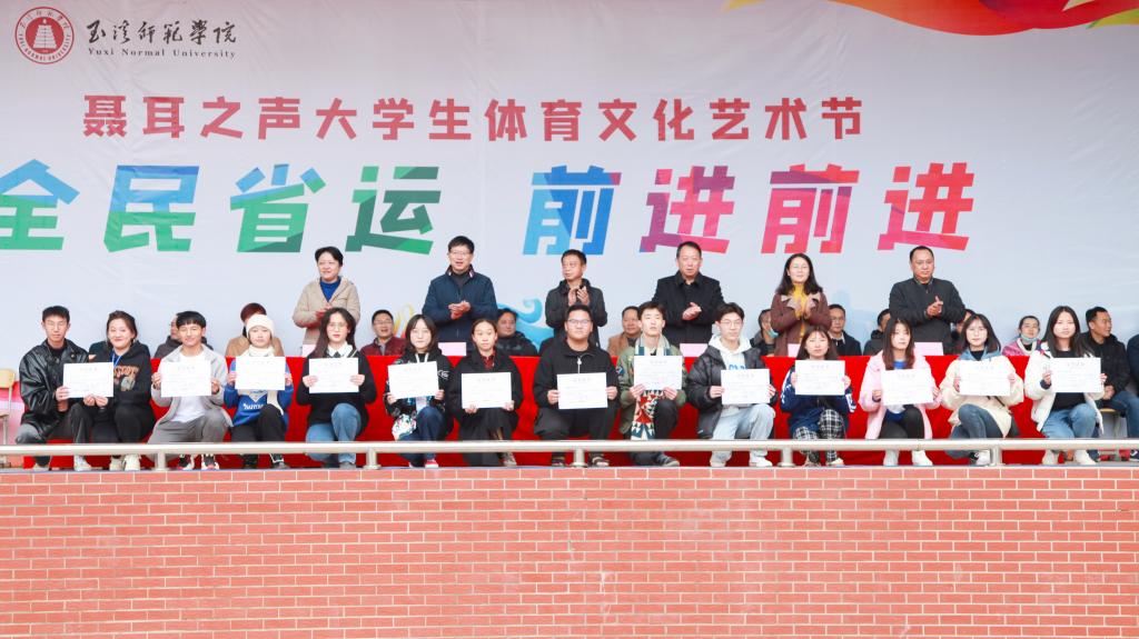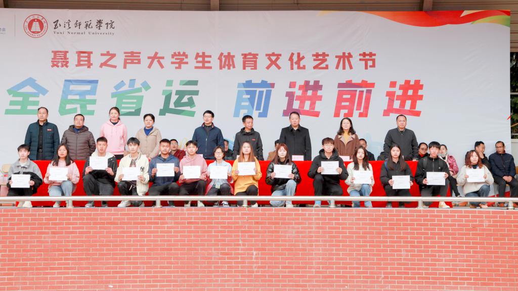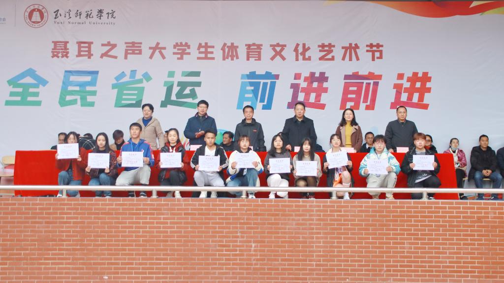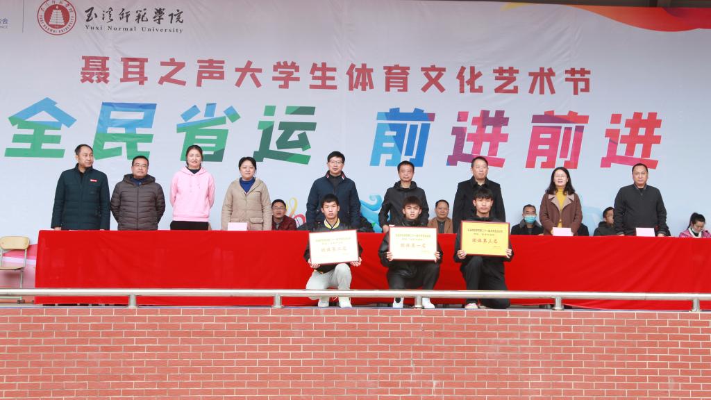 出席闭幕式的校领导分别为花灯健身操比赛、竹竿舞比赛获奖学院代表,体育道德风尚奖获奖学院代表,“精神文明裁判员”“精神文明运动员”“最佳后勤服务人员”代表,体育专业组比赛团体总分前三名的年级,非体组比赛团体总分前六名的学院颁奖。