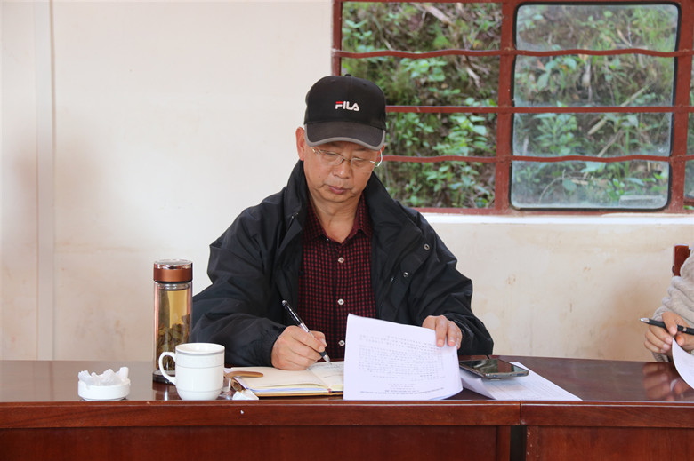 实地调研后,马力校长一行在大乜多村委会召开乡村振兴工作调研座谈会,墨江县政协、龙坝镇相关领导,学校驻墨江县龙坝镇大乜多村、竜巴村、曼婆村、竜宾村、杩木村工作队员参加座谈。墨江县政协副主席王斌主持座谈会。
