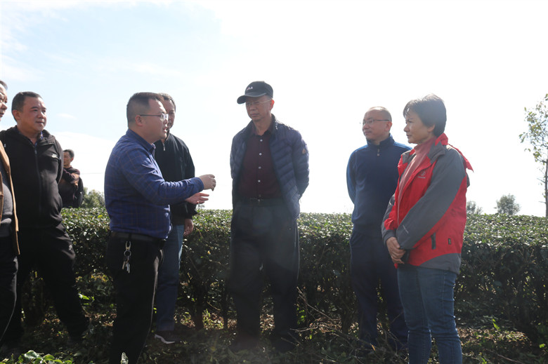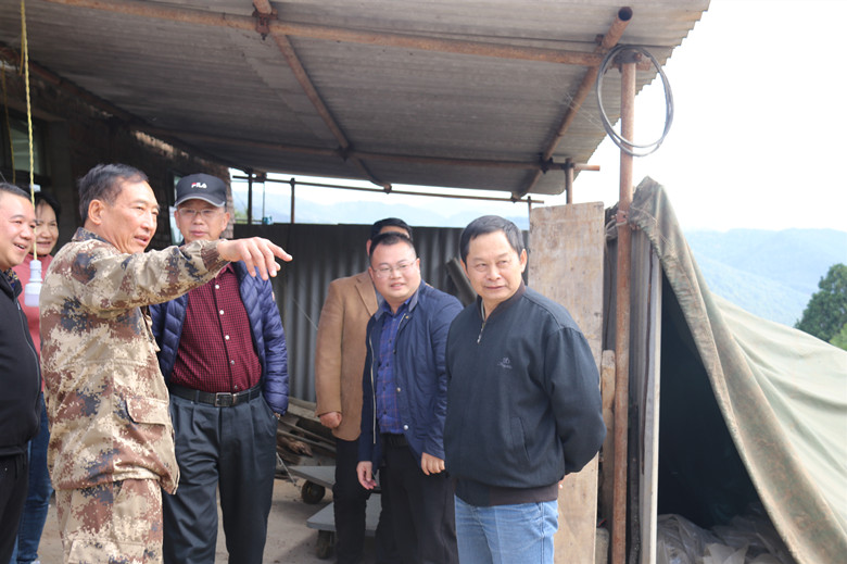 马力校长一行到达大乜多村后,与龙坝镇相关领导一同实地调研了我校帮扶发展的竜巴村瑶鸡养殖、多萨云端万亩茶园、林下生态鸡养殖基地,龙坝镇领导、驻村工作队员现场详细介绍了大乜多村目前产业发展的情况及运作模式。