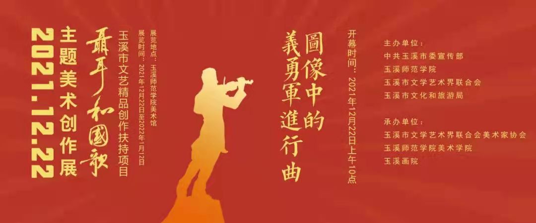 12月22日上午10时,由中共玉溪市委宣传部、玉溪师范学院、玉溪市文学艺术界联合会、玉溪市文化和旅游局主办,玉溪市文学艺术界联合会美术家协会、玉溪师范学院美术学院、玉溪画院承办的图像中的《义勇军进行曲》——玉溪市文艺精品创作扶持项目“聂耳和国歌”主题美术创作展开幕式在玉溪师范学院美术馆举行。