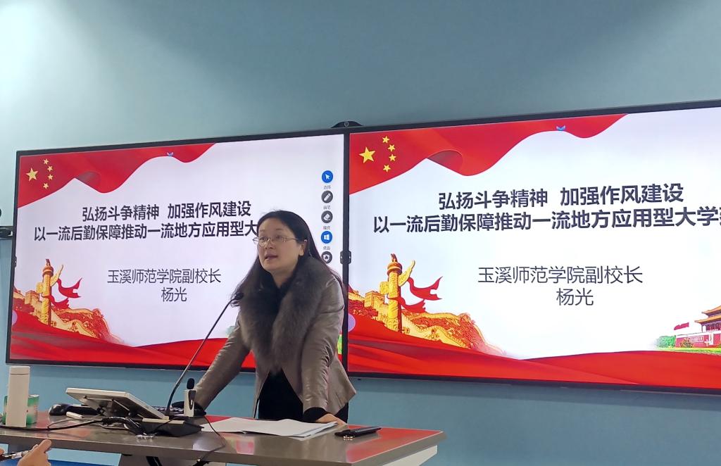 1月6日下午,学校党委委员、副校长杨光以“弘扬斗争精神 加强作风建设——以一流后勤保障推动一流地方应用型大学建设”为题,围绕“斗争精神的深刻内涵、斗争精神在不同时代的内涵呈现、发扬斗争精神的路径和方法”三个方面,为保卫处、后勤服务中心、资产经营公司、国有资产办公室党员及科级以上干部讲授廉政专题党课。