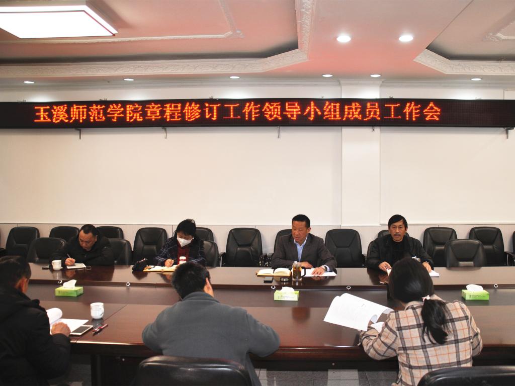 姜家雄强调,要高度重视新形势下玉溪师范学院章程修订的重要性,强化统筹意识,做到统揽全局、协调各方,抓实责任、抓紧时间、抓细工作,确保以高标准开展、高质量推进、全面把握,全力推进《章程》修订进度。