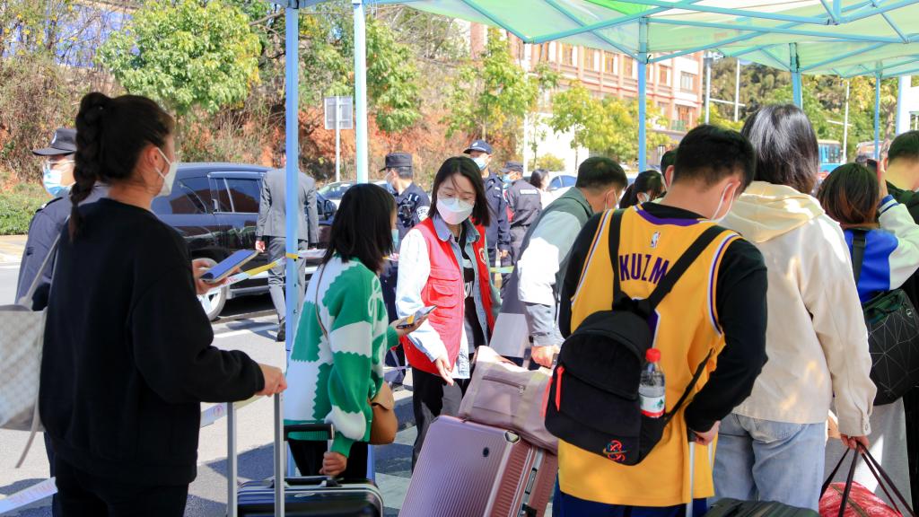 2月27日,玉溪师范学院2022年春季学期第一批学生开学返校。返校当天,同学们根据返校要求,凭健康码、通信大数据行程码、核酸检测证明在现场工作人员的指引下,在老师、志愿者等的帮助下,安全有序返校报到。据大数据实时统计显示,2月27日当天,全校共有6404名学生安全返校。