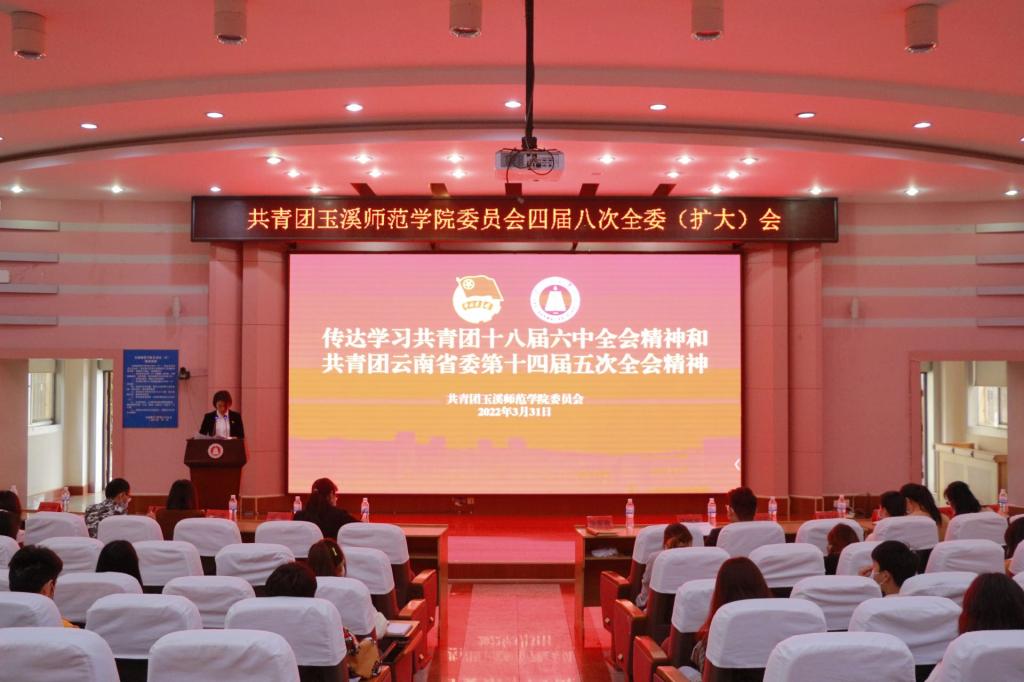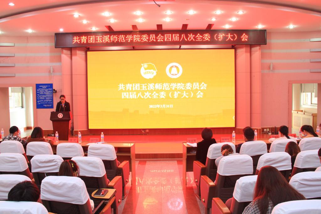 2022年3月31日下午,共青团玉溪师范学院委员会四届八次全委(扩大)会议在科学讲堂召开,学校党委副书记葛平出席会议并讲话。共青团玉溪师范学院第四届委员会委员、各学院团委书记、第七届学生委员会委员以及各学院团委学生会主席团成员共计60余人参加会议。会议由校团委副书记余家赛主持。