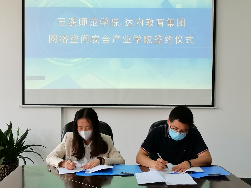 洽谈会后,玉溪师范学院副校长章新与达内签约共建人工智能产业学院,数学与信息技术学院院长李周红与达内签约共建网络空间安全产业学院,双方将积极推进产学研用协同育人,努力实现地方、高校、产业合作发展共赢。
