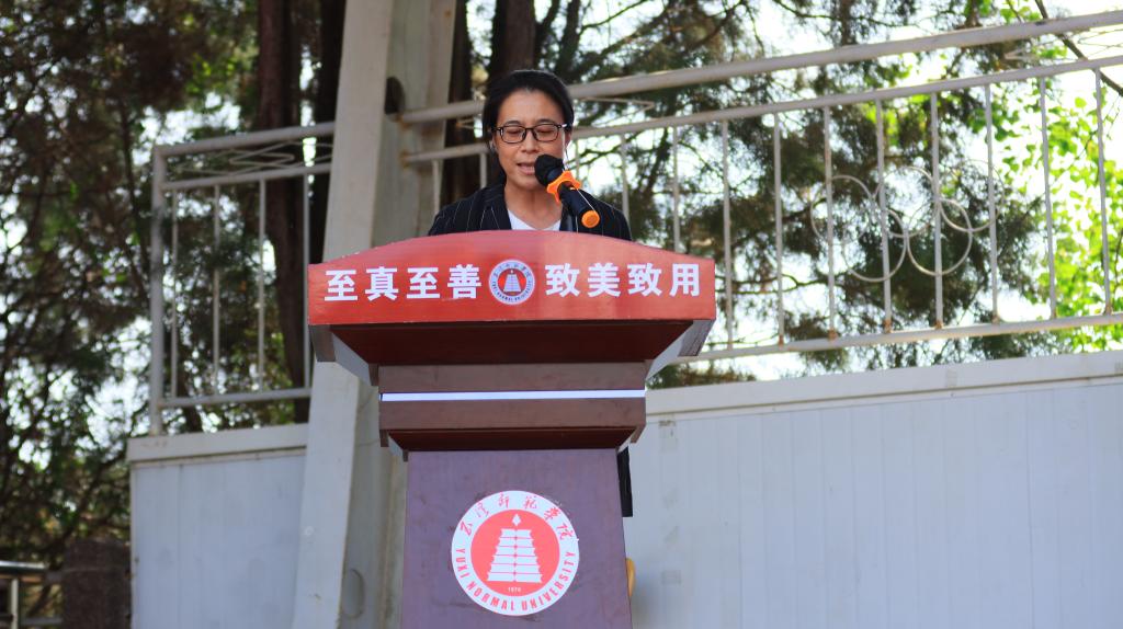 校团委书记徐印芳致开幕词,她代表学校团委对联赛的开幕表示祝贺!向大力支持联赛开展的学校工会以及精心筹备本次赛事的体育学院的师生表示感谢!她希望广大师生积极投身这场盛大的玉师校园运动嘉年华,在全校上下形成热爱体育运动、喜迎省运会的浓厚氛围,并将在体育运动中获得的“自尊自信、自立自强”的人生信念转化为全力备战省运会和建设一流地方应用型大学的不竭动力,以实际行动迎接党的二十大胜利召开!